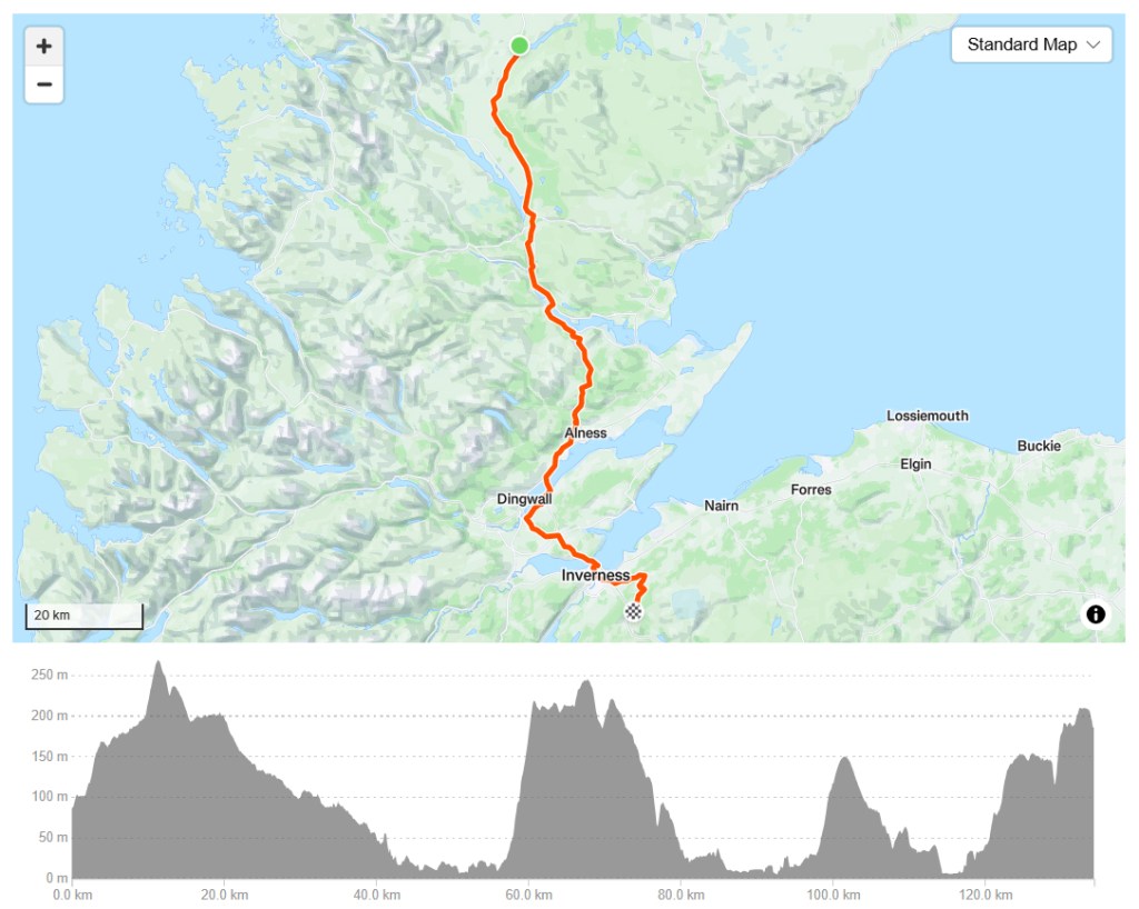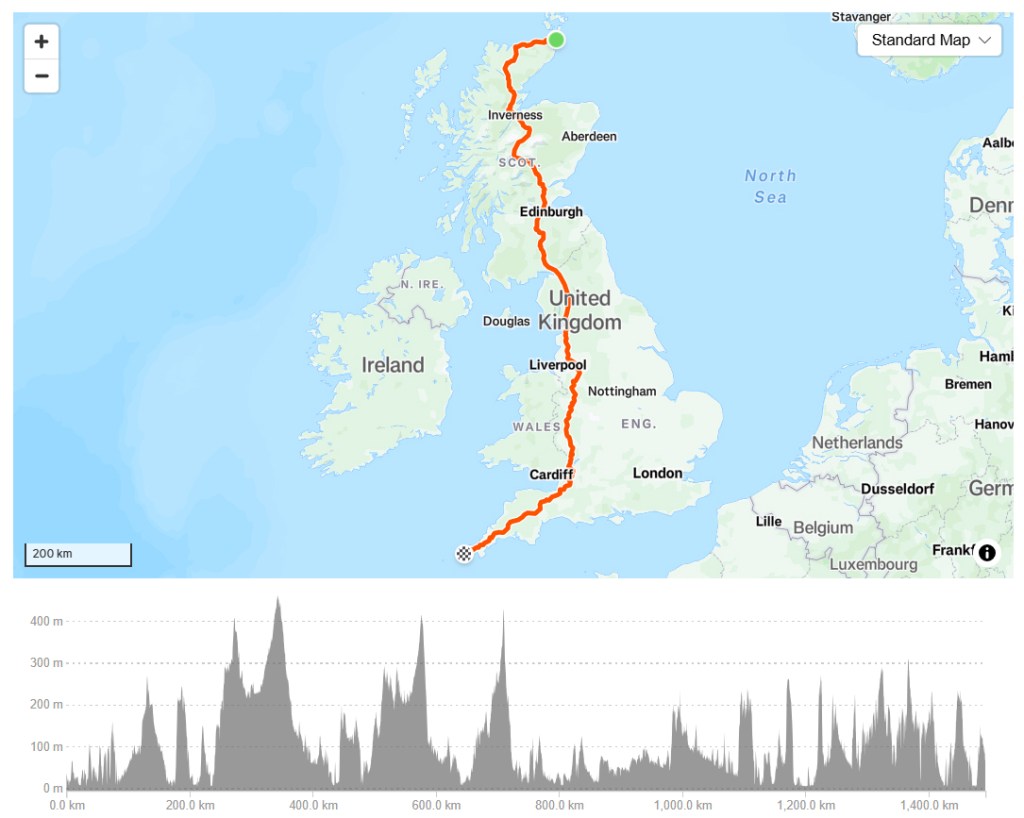 Here it is. My John o’ Groats to Land’s End route, starting 15th May. For the majority, I have followed Ride Across Britain’s LEJoG route, in reverse – with one major change: going around the Cairngorms rather than over them. Perhaps a slight compromise on views, but the more accepted route, and saving 1500m of climbing, and perhaps my knees.