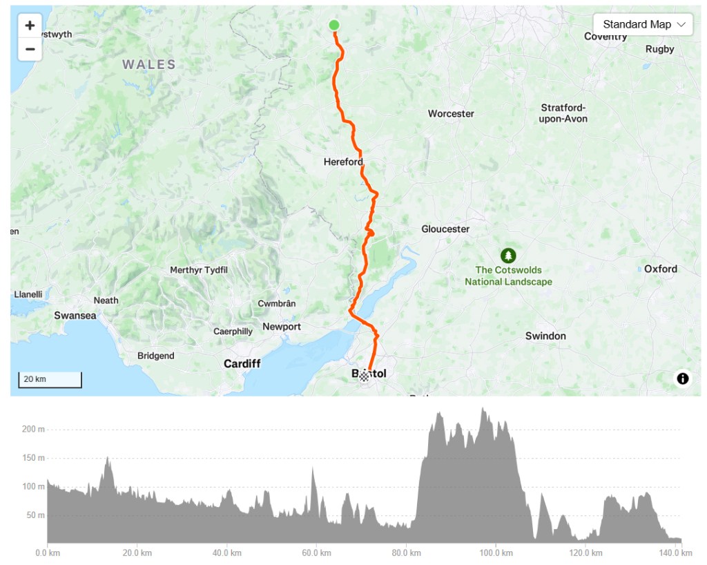 This day is markedly shorter than other days, as by coincidence, my route takes me past Rommany’s house in Seifton. Rommany has kindly offered me to stay for the night. However, I will be very aware I have some heavy cycling coming up, especially Day 11, and I may decide to cycle on and make some headway into Day 9. Or I may be very welcome of the rest!