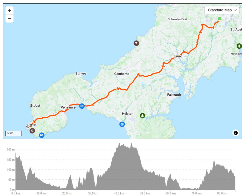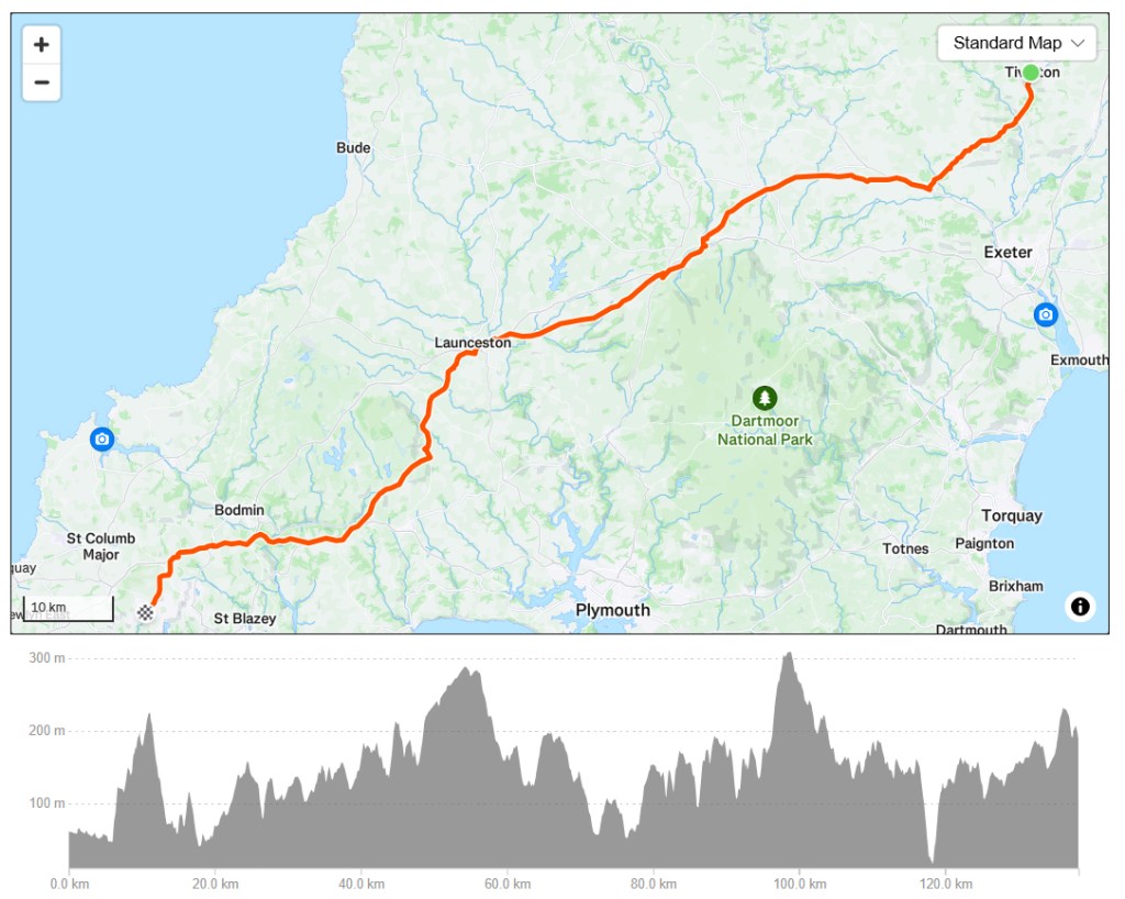 I’m aiming to cycle over 12 days, starting on 15th May, and finishing on Bank Holiday Monday 26th May. That averages approximately 125km per day. The elevation gain is insane, at nearly twice the height of Everest! These are mostly centred around the long, steady climbs of Scotland and the Lakes, and the shorter but much sharper peaks of Cornwall.