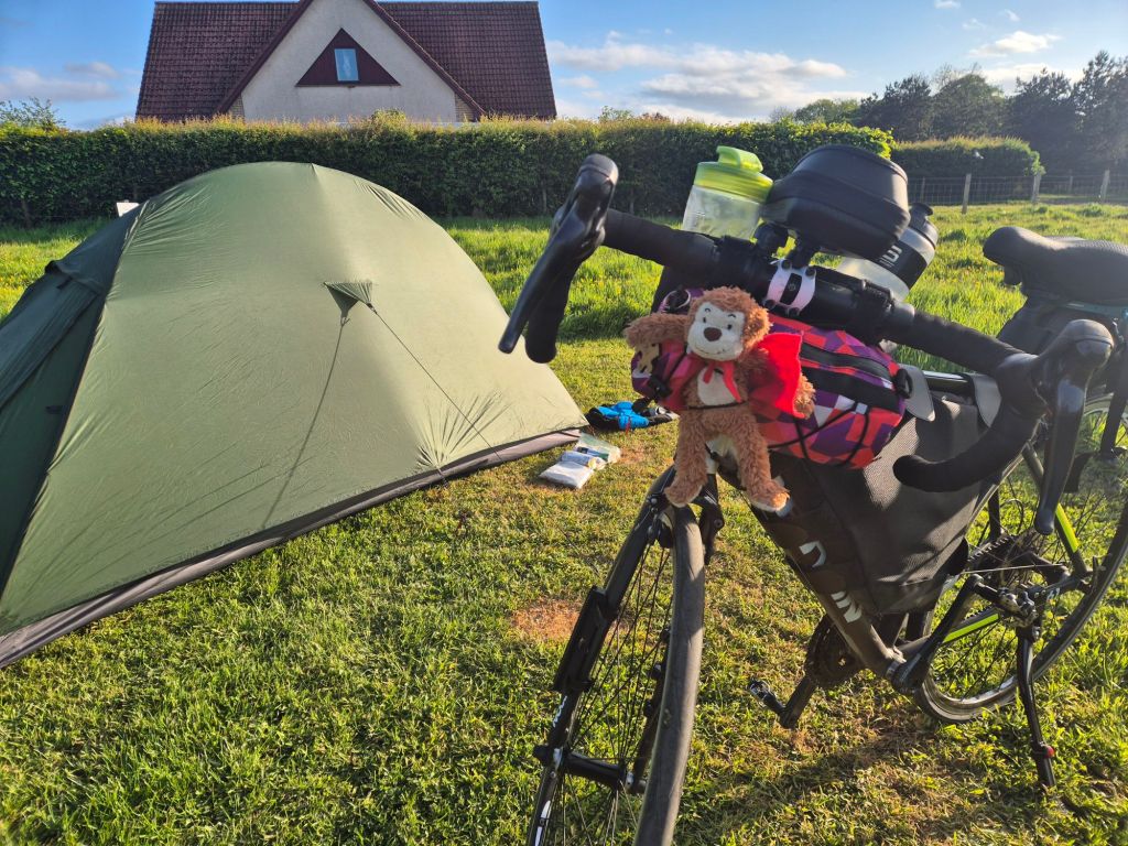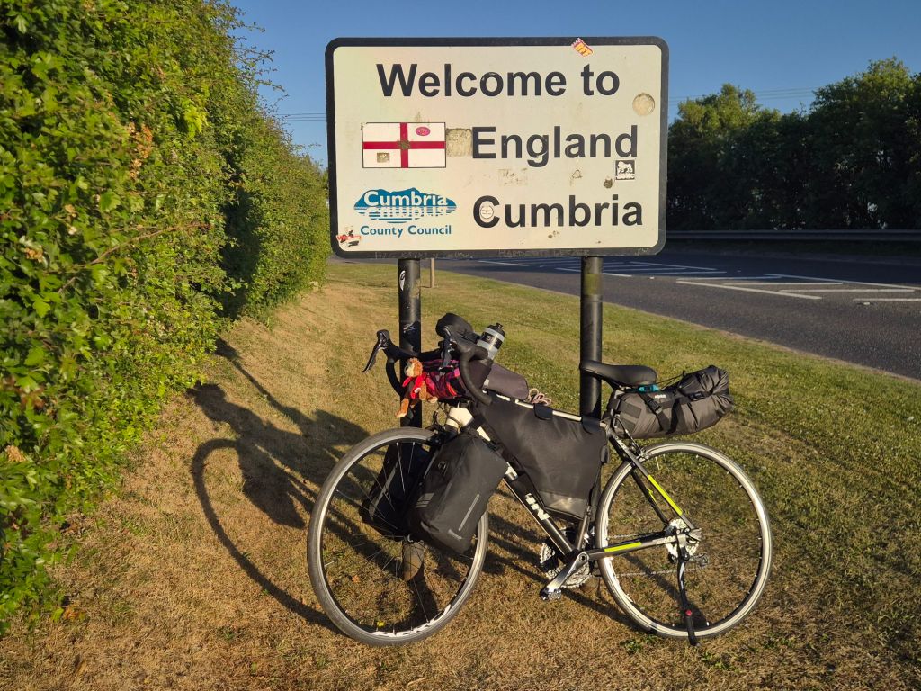 Yesterday was the toughest day yet, not just because of climbing Shap’s Fell. I had a spot of bother with my bike, and needed to take it to a repair shop in Carlisle. (Shout out to Palace Cycles, who were so kind and generous in helping me, despite being very busy). This meant I didn’t really get started til after 11am, and didn’t make it to camp til 930pm. I dread to think what the campsite owners thought of me, turning up in my pink attire, dishevelled and beaten as the sun was setting! But they very kindly let me pitch up.